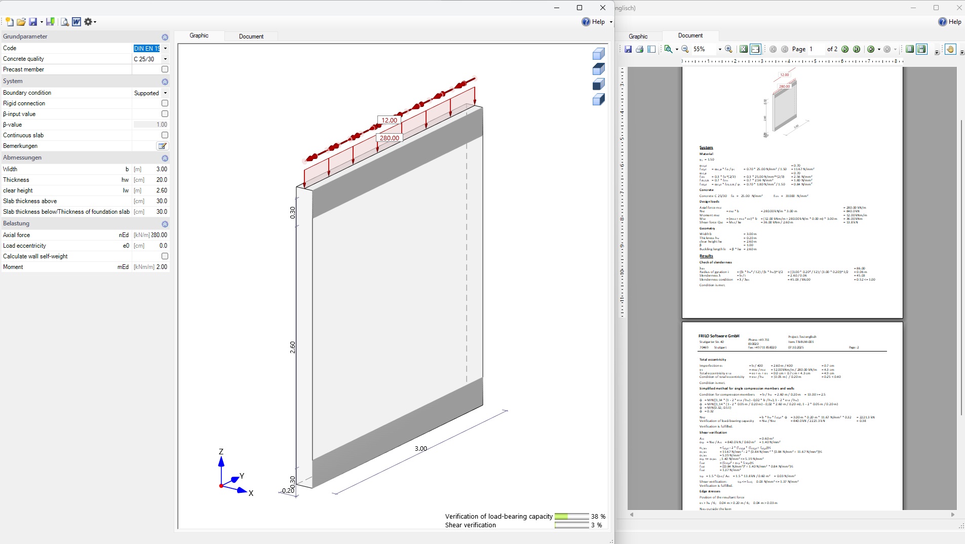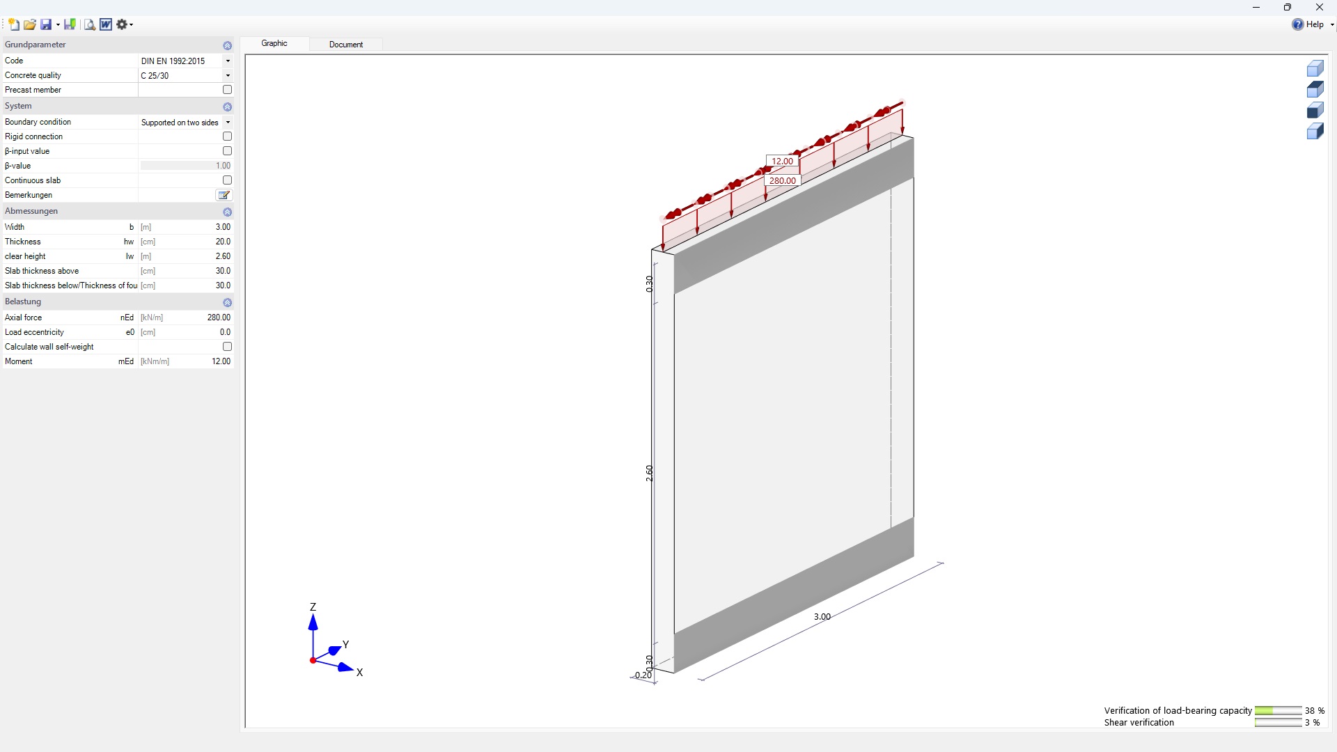 The “Unreinforced Concrete Wall” toolbox can be used to carry out all necessary verifications for unreinforced concrete walls in accordance with EC 2, Chapter 12.