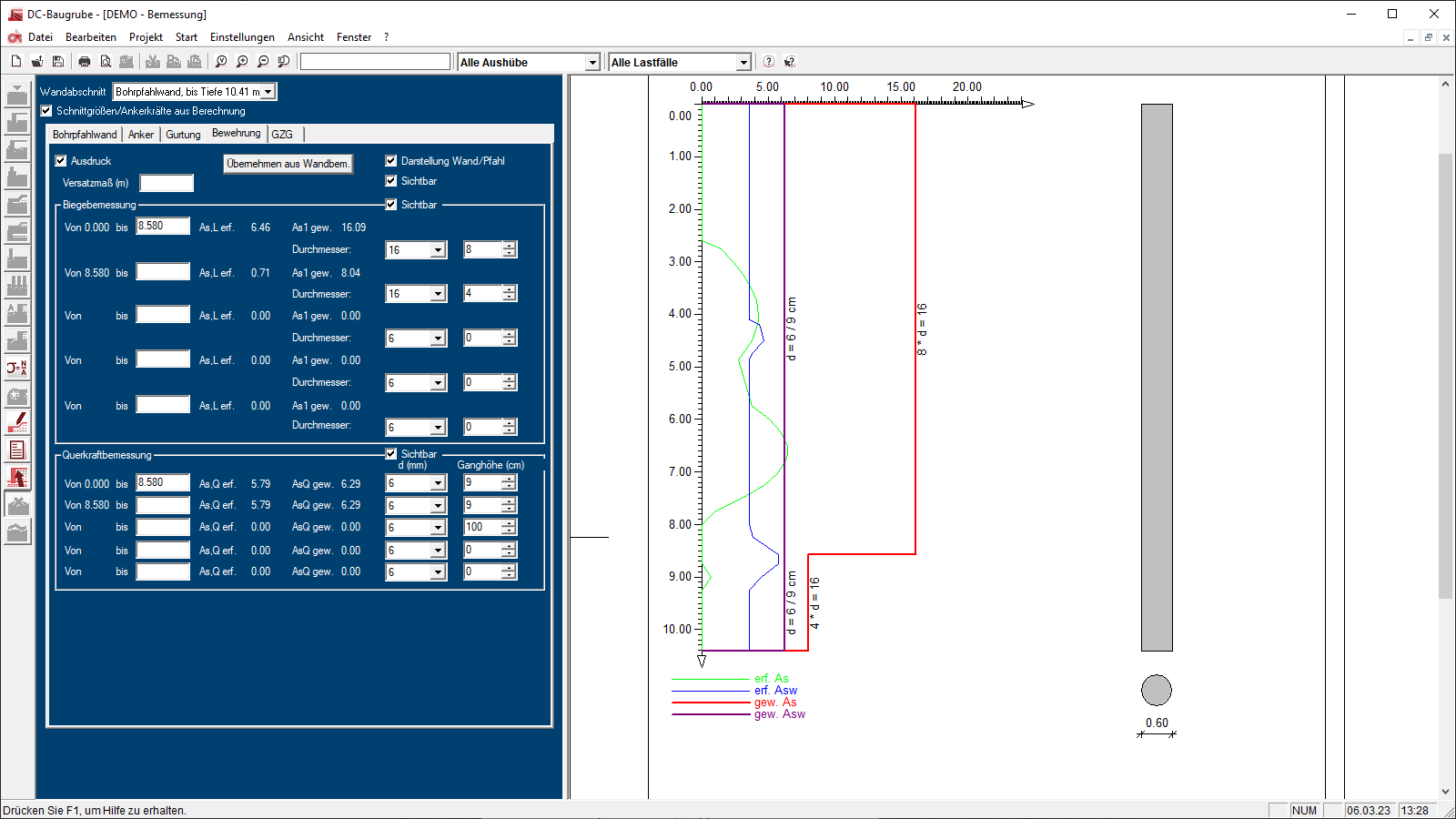 - Bemessung zum Staffeln der Bewehrung über die Zugkraftdeckungslinie bei Bohrpfahlwänden und Schlitzwänden