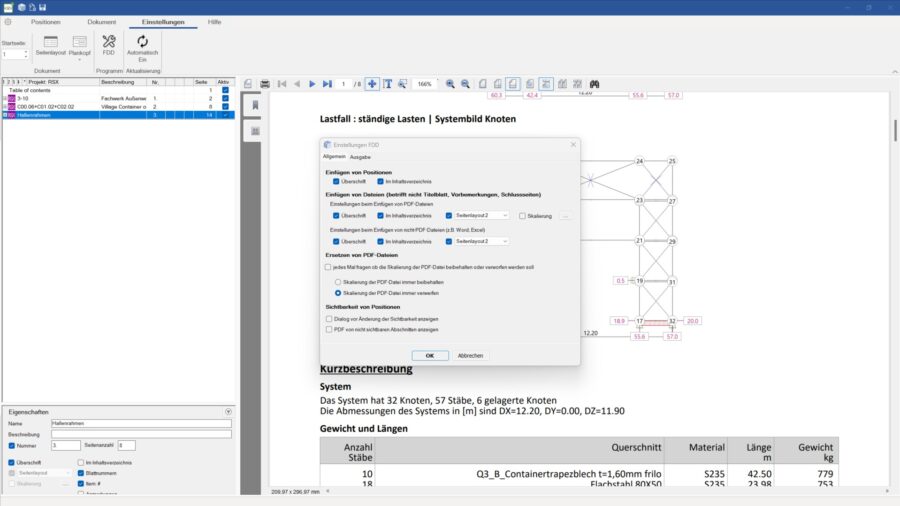 Die Ausgabe der FRILO-Positionen wird in FRILO 2025 über eine neu entwickelte Schnittstelle zum Ausgabedokument erzeugt. Das führt dazu, dass die Ausgaben bis zu sechs Mal so schnell erstellt werden. Gleichzeitig werden die Datenmengen reduziert. Außerdem können Anwender in den FDD-Einstellungen nun definieren, ob FRILO-Positionen und extern hinzugefügte Dateien immer in das Inhaltverzeichnis aufgenommen werden sollen oder nicht. Auch inaktive Positionen lassen sich in der Positionen-Ansicht ohne Seitenkopf und mit farblicher Hervorhebung darstellen.