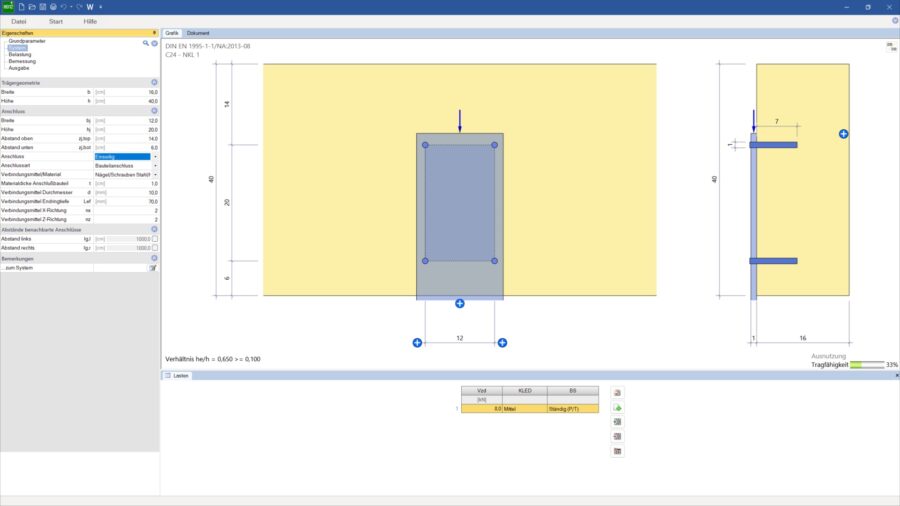 Queranschlüsse an Holzbalken bemessen