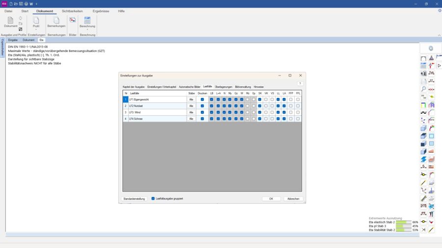 Ausgabe von Spannungen und Dehnungen bei Heißbemessung